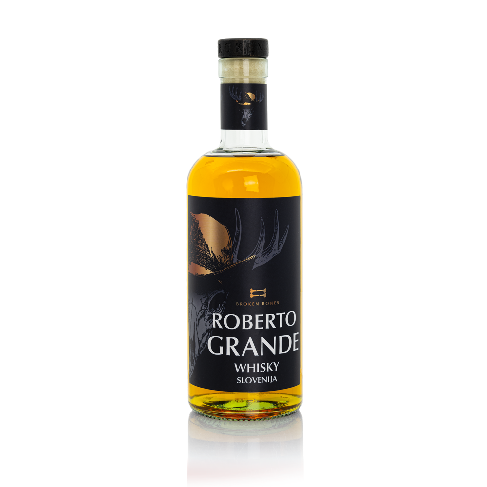 Roberto Grande Whisky is made of finest barley malt, yeast and water and after blending it is nurtured in carefully selected combination of barrels from Slovenian and American oak that contribute to its sweet and full flavor. Non-chill filtered. No added coloring.